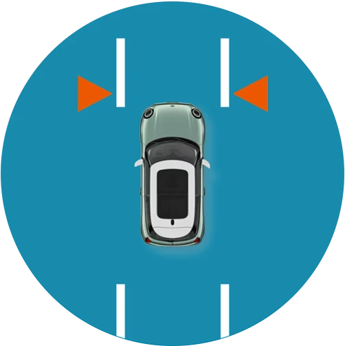 Le MINI Countryman garde vos arrières avec la fonctionnalité avertisseur de changement de voie, disponible de série. Si un véhicule se trouve dans votre angle mort, des signaux visuels dans les rétroviseurs extérieurs et des vibrations dans le volant vous le signalent pour vous aider à éviter une collision en cas de changement de voie.